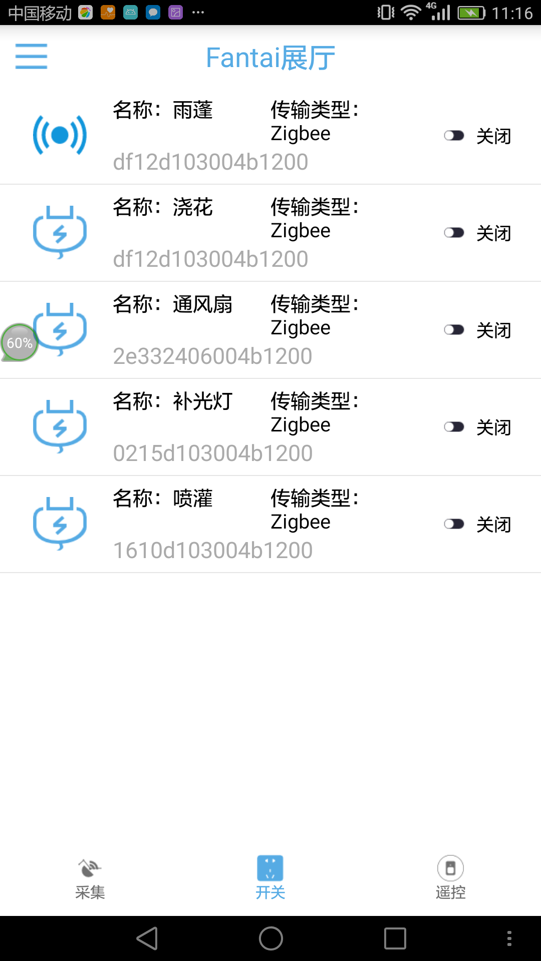 功能:支持315M、433M、紅外等無(wú)線(xiàn)頻段的轉發(fā),通過(guò)智能遙控器,統一接入ZIGBEE網(wǎng)絡(luò ),由物聯(lián)網(wǎng)網(wǎng)關(guān)統一管理。 由ZigBee通訊模塊、315/433MHz微功耗超外差無(wú)線(xiàn)收發(fā)模塊、紅外收發(fā)模塊、以及控制主板組成; 控制主板:采用51單片機,具有射頻、紅外、ZigBee信號收發(fā)功能,射頻編解碼壓縮算法保證低數據量傳輸; 紅外收發(fā):內置7個(gè)紅外發(fā)射頭,多方位水平發(fā)射,保證每條命令準確送達,可學(xué)習并遙控多種紅外設備,直線(xiàn)距離約8米; 射頻收發(fā):包含315/433射頻硬件,可學(xué)習并遙控多種射頻設備,直線(xiàn)距離約8米; 紅外頻率:38KHz; 射頻頻率:315/433MHz; ZigBee頻率:2.4GHz,Z-Stack2007協(xié)議棧; 輸入電壓:DC 5V; 輸入電流:≥1A。 |