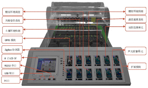 物聯(lián)網(wǎng)農業(yè)教學(xué)實(shí)訓系統以高性能低功耗的網(wǎng)關(guān)控制器為核心,結合ZigBee無(wú)線(xiàn)傳感網(wǎng)及控制技術(shù),對系統中的農作物生長(cháng)過(guò)程中涉及的多種環(huán)境因素進(jìn)行檢測和處理,并智能的對各種突發(fā)、惡劣情況進(jìn)行實(shí)時(shí)處理,極大的節省了人力物力,保護生態(tài)環(huán)境,提高經(jīng)濟效益。