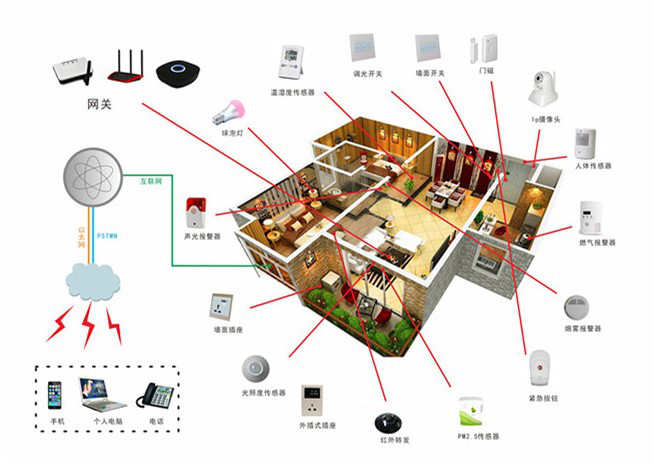 4、安防系統:門(mén)磁傳感器、煙霧傳感器、聲光報警器、攝像頭等組合成家里的安全監控系統,預防安全隱患和及時(shí)報警處理?;赪iFi無(wú)線(xiàn)網(wǎng)絡(luò )或是有線(xiàn)網(wǎng)絡(luò )的遠程視頻監控、語(yǔ)音對講、視頻通話(huà)等功能。傳感器實(shí)時(shí)監控室內各種環(huán)境信息,一旦有異常情況發(fā)生,自動(dòng)生成報警信號。