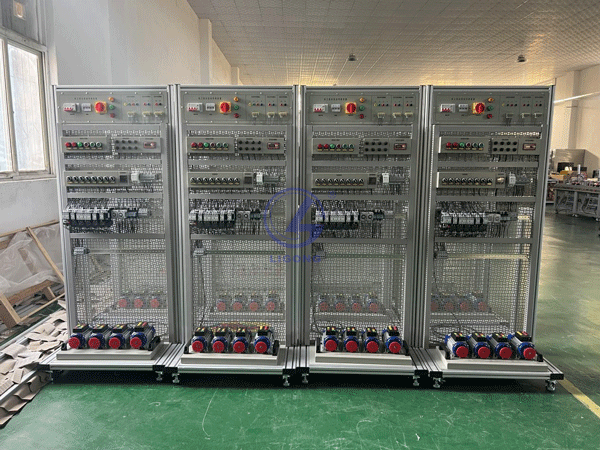 控制屏應采用立式結構,由網(wǎng)孔板、安全防護隔板、支撐架及支撐條、4只萬(wàn)向輪、空氣開(kāi)關(guān)、開(kāi)關(guān)電源、插座等組成,平臺中全部單元模塊都安裝在標準控制屏上。