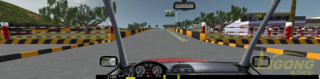 啟動(dòng)畫(huà)面后,界面下方同時(shí)顯示:油門(mén)、剎車(chē)、轉向、離合器深淺進(jìn)度均有顯示。視景120度全新廣角寬頻駕駛模擬,界面顯示各項指示燈、文字提示框、檔位位置、訓練成績(jì),后視鏡(左、右、中)后視鏡可調節、訓練線(xiàn)路圖均有顯示。