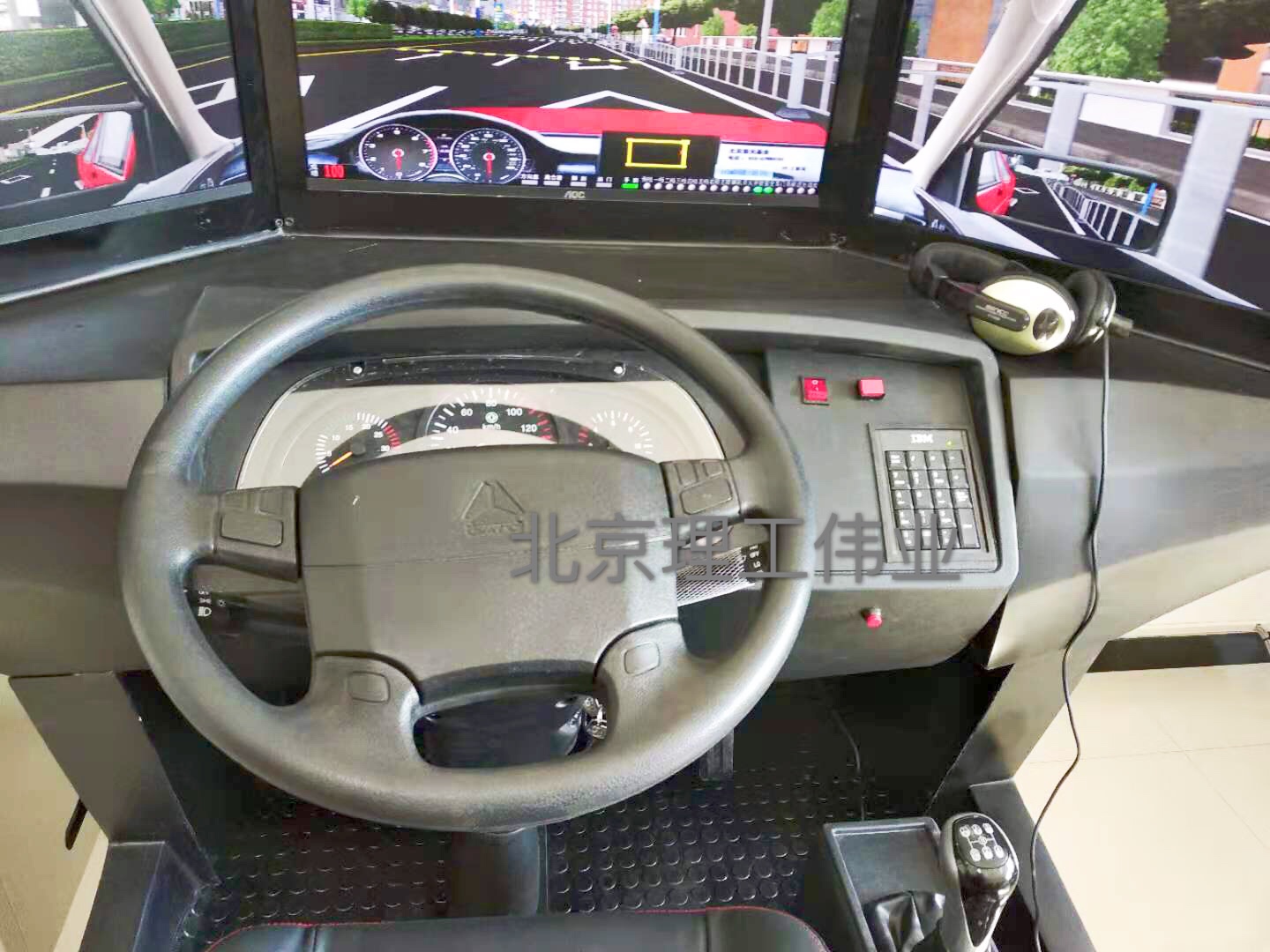 4.8視頻界面功能:a.主視屏:顯示駕駛前方道路與周?chē)窙r、使學(xué)生能感覺(jué)身在駕駛室操作著(zhù)運行中的汽車(chē)。并顯示檔位、成績(jì)分數。b.后視鏡:左右后視鏡均能達到與真車(chē)相同的模擬效果,可調節升降。c.模擬儀表顯示:方向、油門(mén)、離合器、腳剎車(chē)、手制動(dòng)演示操作進(jìn)度;指示燈、時(shí)速、里程、發(fā)動(dòng)機轉速均有在模擬儀表上顯示。