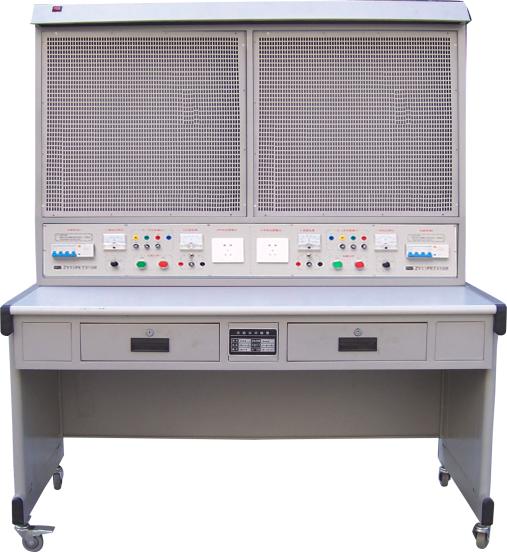 5、實(shí)訓桌為鐵質(zhì)雙層亞光密紋噴塑結構,桌面為防火、防水、耐磨高密度板,結構堅固,造型美觀(guān)大方,桌子左右有抽屜,下部有元件儲存柜。