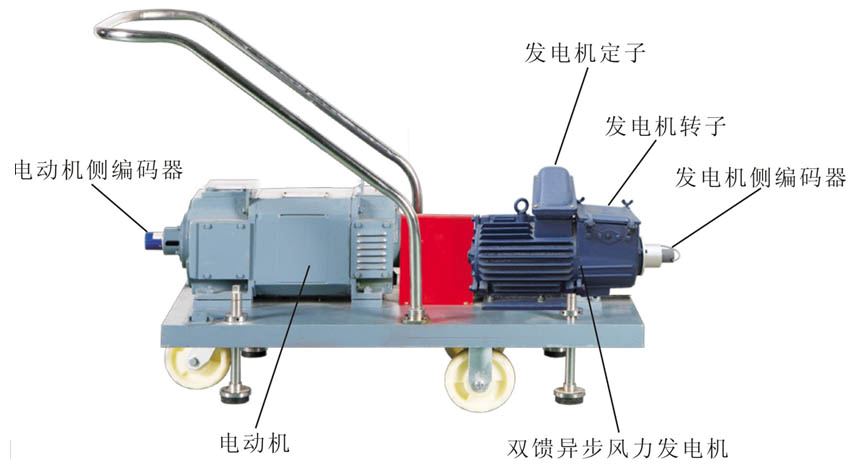 發(fā)電機組由直流電動(dòng)機、雙饋異步風(fēng)力發(fā)電機、轉速傳感器、機組固定底盤(pán)及配套件等構成。