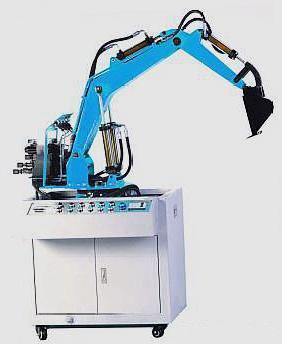 3、挖掘機械按實(shí)物比例縮小的全金屬結構,實(shí)驗時(shí)啟動(dòng)液壓系統根據實(shí)驗要求模以操作機械進(jìn)行工作。