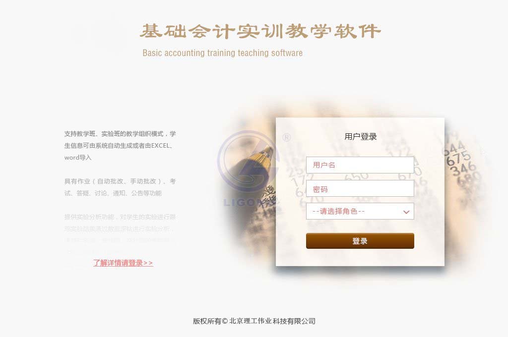 1.軟件按會(huì )計教學(xué)課程章節預置實(shí)訓內容,既有單項實(shí)訓又有綜合實(shí)訓,可按章節形式進(jìn)行教學(xué),教師可自行調整章節順序。 2.B/S結構,無(wú)用戶(hù)數限制,客戶(hù)端不需要安裝...