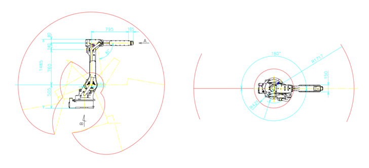 LGL-620型 六軸工業(yè)機器人工作空間大、性能穩定、外型美觀(guān)、重復定位精度高、上下料軌跡優(yōu)化節拍快、模塊化的機械結構設計。手腕額定負載16Kg,*大負載波20Kg,*大工作半徑1717mm。