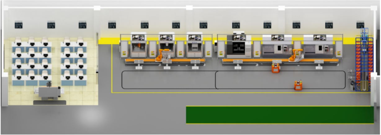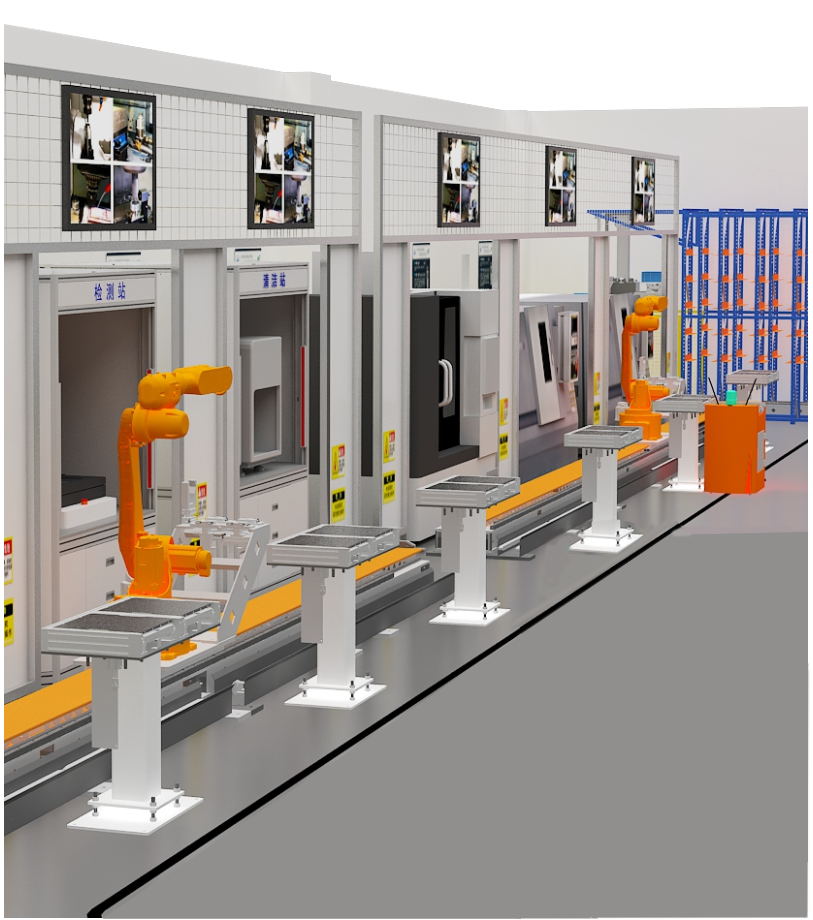 數字化協(xié)同制造與設計中心、數控機床加工制造單元及其自動(dòng)化改造、自動(dòng)化清洗單元、,自動(dòng)化檢測單元、自動(dòng)化裝配單元、自動(dòng)化立體倉儲單元、多軸移動(dòng)工業(yè)機器人上下料單元、AGV運載單元、監控單元、系統中央控制單元