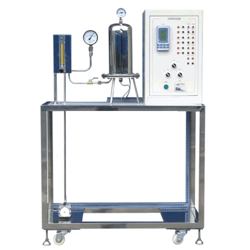 該實(shí)驗裝置包括微型氣泵和不銹鋼空氣罐組成。其中不銹鋼常壓空氣罐里面有電加熱器裝置,并配有壓力檢測裝置和溫度檢測裝置。微型氣泵與變頻器組成壓力控制系統。電加熱器裝置與可控硅調壓模塊組成溫度控制系統。