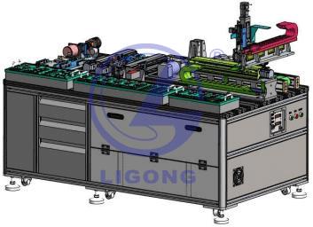 機架結構采用鋁型材搭建,配地腳滾輪,警示燈,按鈕 控制盒,電氣元件安裝板采用可抽拉結構。尺寸:(長(cháng)寬高)1850×1050×850mm。