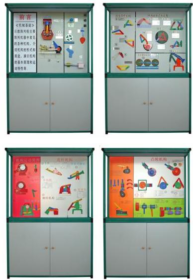 本設備是根據大中專(zhuān)院校、職業(yè)學(xué)校的教學(xué)大綱設計的機械陳列柜,《機械基礎》電化教學(xué)設備。陳列柜共分十個(gè)柜和一個(gè)電腦控制臺,進(jìn)行多媒體聲控同步解說(shuō)演示。由PC機電腦控制順序或任選運行每個(gè)柜模型動(dòng)作,同時(shí)電腦播放圖像或三維動(dòng)畫(huà)同步模型動(dòng)作。