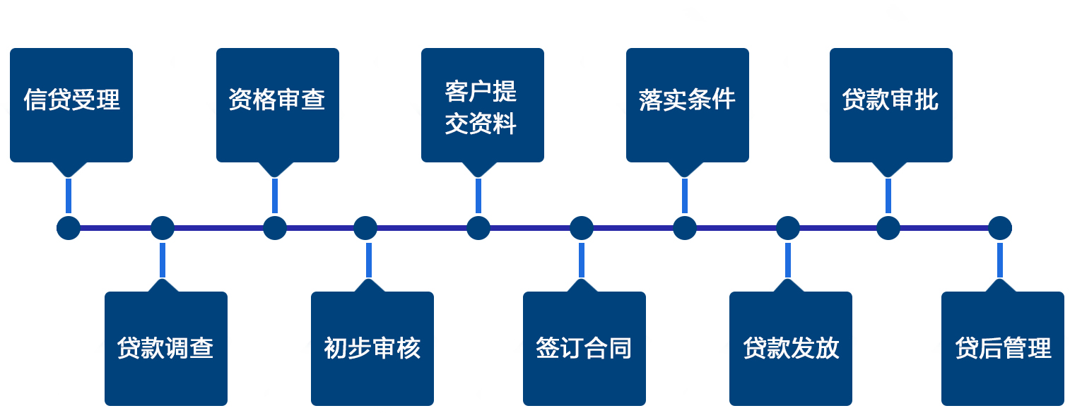 實(shí)訓主體分五類(lèi)流程:短期貸款、長(cháng)期貸款、票據貼現、個(gè)人住房抵押貸款、個(gè)人汽車(chē)消費貸款。提供靈活的業(yè)務(wù)流程控制,包括受理、資格審查、貸款調查、貸款審批、落實(shí)條件、簽訂合同、貸款發(fā)放、貸后管理等步驟。