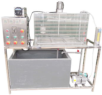 反應池、曝氣頭、抽吸泵、氣泵、水泵、流量計、配水箱、穿孔曝氣器、不銹鋼可移動(dòng)框架、控制屏。