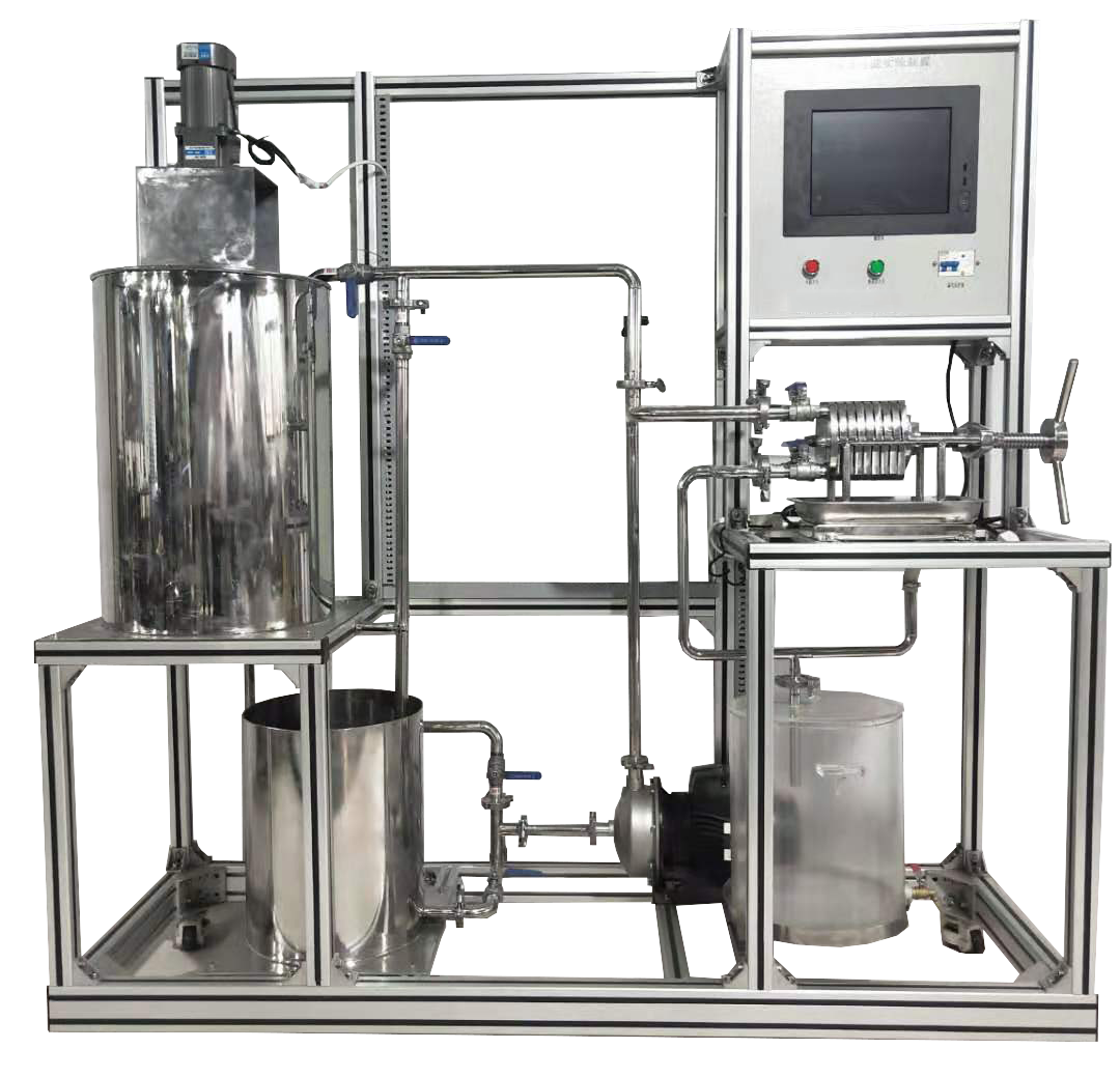 4、該實(shí)驗裝置是由過(guò)濾板、過(guò)濾框組成的小型工業(yè)用不銹鋼板框過(guò)濾機,能完整地體現了板框壓濾機的構造和操作流程,采用氣動(dòng)配料、氣動(dòng)攪拌加壓技術(shù),用空氣將物料注入過(guò)濾機,工程化概念強。