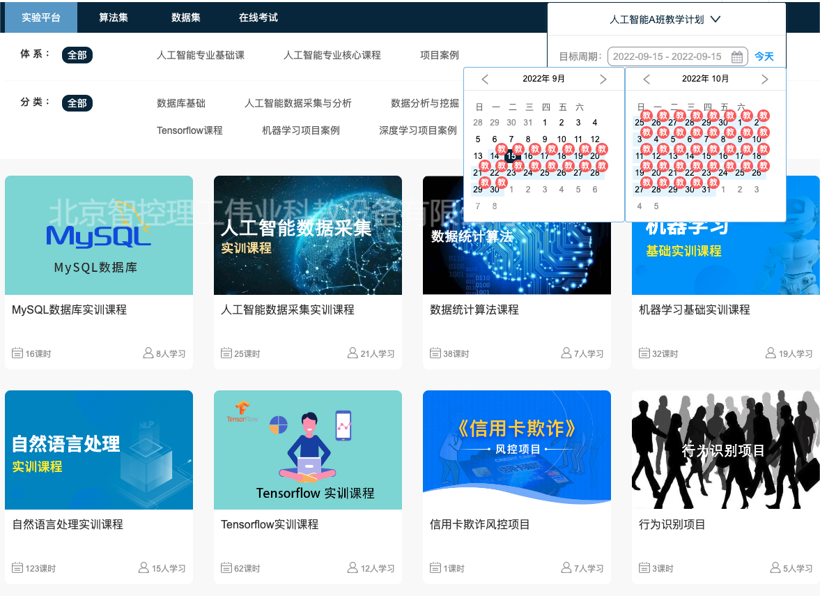 人工智能實(shí)訓課程資源共計200多個(gè),資源涵蓋了操作系統類(lèi)、數據庫類(lèi)、編程語(yǔ)言類(lèi)、統計分析類(lèi)、機器學(xué)習類(lèi)、神經(jīng)網(wǎng)絡(luò )與深度學(xué)習類(lèi)、自然語(yǔ)言處理類(lèi)、機器視覺(jué)類(lèi)、智能硬件類(lèi)課程等諸多方面課程,課程類(lèi)型包括基礎實(shí)訓、關(guān)鍵技術(shù)掌握、應用創(chuàng )新等,是一個(gè)綜合性的學(xué)習研究平臺;平臺配合專(zhuān)用的資源監控系統、課程監控系統,可實(shí)時(shí)的監控整個(gè)平臺的硬件資源負載以及學(xué)生學(xué)習的狀態(tài),可幫助教師合理的安排課程及對應資源。
