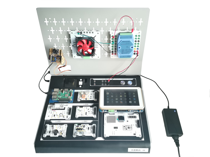 1、硬件部分采用F-Table實(shí)驗臺體,具有八個(gè)尺寸不同的插槽、一個(gè)可拆卸網(wǎng)板、小型信號示波器、3V/5V/12V電源插孔。插槽處用于安裝原理級實(shí)驗模塊,磁吸固定,探針連接信號(RS232、TTL UART、5V、3.3V)。網(wǎng)板支持商用級模塊磁吸安裝,導線(xiàn)連接。平臺支持靈活組合,可與人工智能Python主板、人工智能Android主板、智能網(wǎng)關(guān)通信,進(jìn)行IOT基礎教學(xué)實(shí)驗、人工智能應用實(shí)驗。外觀(guān)如下圖: