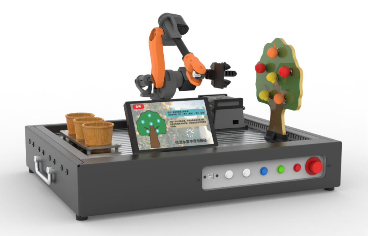 桌面六軸機器人*1;智能一體化底座*1;視覺(jué)模塊*1;水果配件包*1;實(shí)驗指導手冊*1
