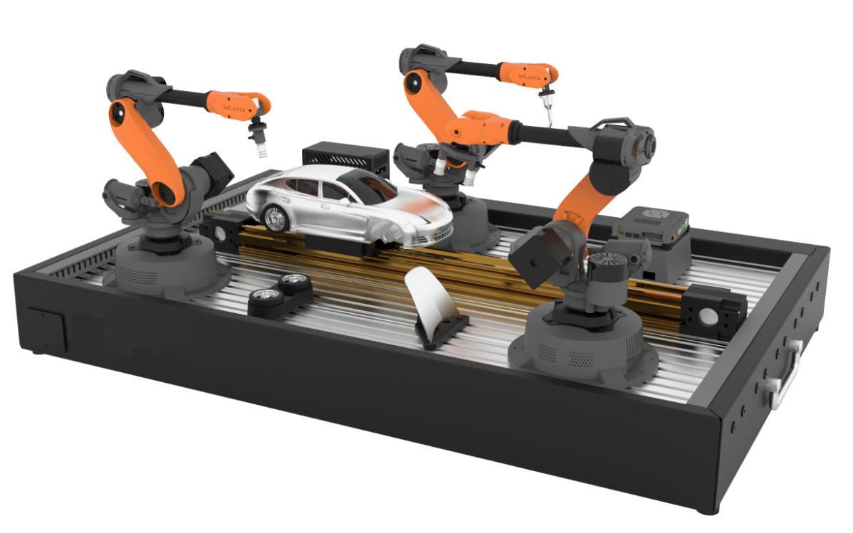 桌面六軸工業(yè)機器人*3、滑軌套件*1、智能一體化底座*1、金屬車(chē)模型*1