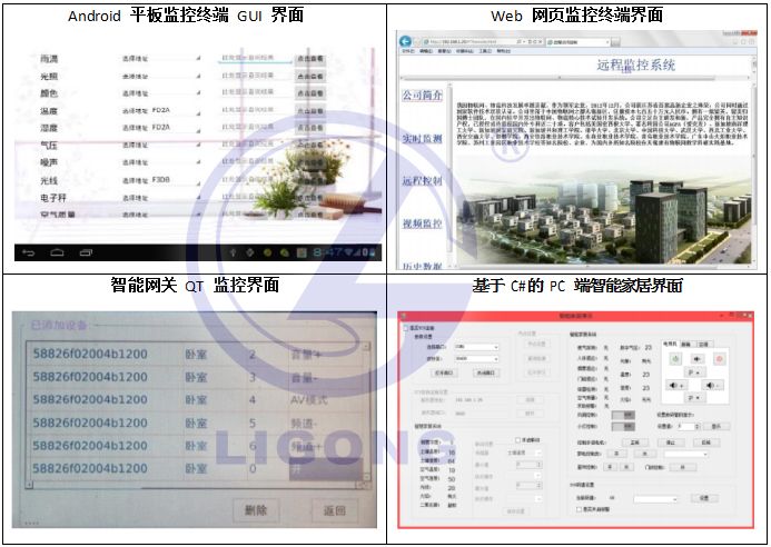 系統軟件默認采用 C/S 結構,主要包括無(wú)線(xiàn)網(wǎng)絡(luò )傳感器數據透明傳輸軟件、智能網(wǎng)關(guān)基于 Qt 的智能家居系統軟件、基于 Android 的智能家居系統軟件、基于 C#的智能家居系統軟件。同時(shí)系統提供基于 B/S 體系結構的智能家居網(wǎng)絡(luò )化遠程監控軟件。