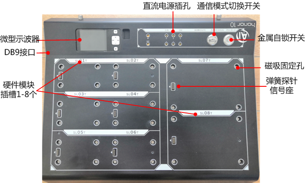 通用基礎平臺由平臺基座與垂直網(wǎng)板組成,符合人體工學(xué)設計?;_(kāi)模設計,采用ABS材料,表面光滑,有質(zhì)感,有對應絲印圖,美觀(guān),大氣;基座具有DB9通信接口,3.3V/5V/12V電源插孔,通信選擇開(kāi)關(guān)、總電源自鎖開(kāi)關(guān);內嵌微型示波器,可完成電路供電測試及工作過(guò)程關(guān)鍵點(diǎn)測試,能夠在電路原理學(xué)習基礎上完成實(shí)踐中的驗證測試,達到理實(shí)一體效果;具有8個(gè)SLOT插槽,磁吸固定孔,彈簧頂針管腳,可與硬件模塊磁性吸合,頂針連接,完成供電、RS485、RS232等標準總線(xiàn)通信。硬件模塊任意組合,支持各種場(chǎng)景應用,每個(gè)模塊都有通信地址和硬件電路測試點(diǎn),讓學(xué)生不僅懂得硬件電路原理,還可使用示波器測試硬件電路工作的瞬態(tài)過(guò)程。垂直網(wǎng)板是金屬網(wǎng)孔板,能磁吸或螺絲固定商用設備,用于用戶(hù)實(shí)驗拓展。