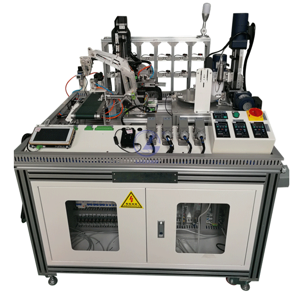 實(shí)訓臺依托工業(yè)背景,具有較完整的模塊化產(chǎn)線(xiàn),包括感知設備、執行機構、可編程邏輯控制器、HMI觸摸屏、工業(yè)網(wǎng)關(guān)、工業(yè)物聯(lián)網(wǎng)云平臺等,能夠開(kāi)展絲桿滑臺直線(xiàn)運動(dòng)控制、轉臺旋轉運動(dòng)控制、機械手坐標調試及多自由度運動(dòng)控制、傳送帶控制及調速、工件到位檢測、氣缸分揀控制、機器視覺(jué)殘次品檢測、加工軸轉速溫度振動(dòng)多參數監測、氣動(dòng)壓力檢測、工業(yè)設備狀態(tài)監測數據上云、工件殘次品統計分析等工業(yè)控制應用實(shí)訓項目,為相關(guān)專(zhuān)業(yè)升級和改革提供教學(xué)、實(shí)驗和科研支撐。產(chǎn)品外觀(guān)如圖所示。
