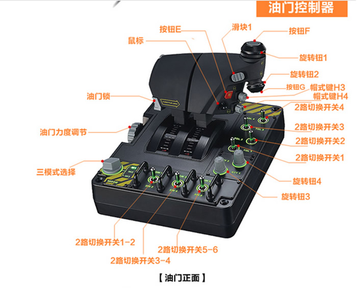 民航:塞斯納YOKE搖桿、腳跺、飛行儀表裝置等 戰斗機:套賽鈦客X-55(左手油門(mén)桿、搖桿) |