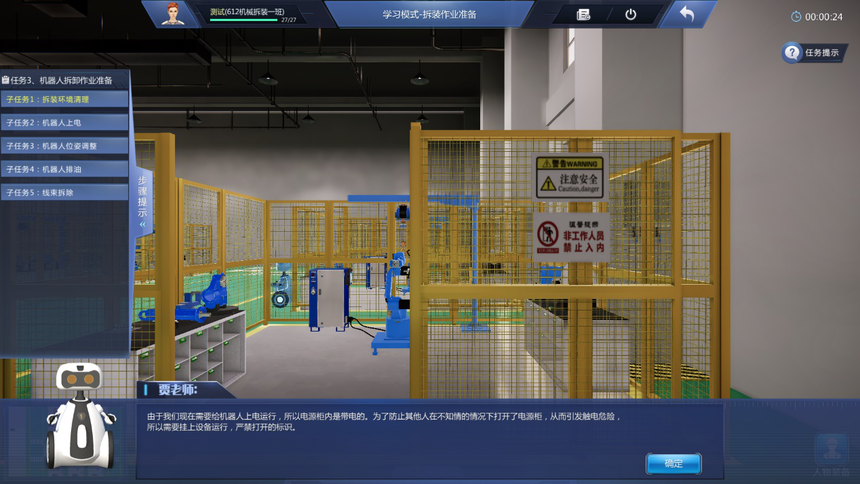 5、沉浸式體驗設計:選擇實(shí)際生產(chǎn)中典型工作任務(wù),融合了崗位職業(yè)技能與專(zhuān)業(yè)技術(shù),進(jìn)行沉浸式學(xué)習情境設計,學(xué)習者通過(guò)實(shí)訓系統中的任務(wù)提示、NPC指引、語(yǔ)音等完成具體任務(wù),逼近真實(shí)的實(shí)訓操作。