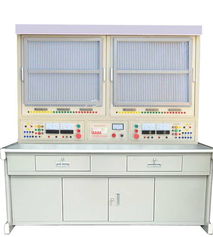 2.控制屏,電源模塊要求提供三相五線(xiàn)電源輸入,經(jīng)漏電保護器后,通過(guò)啟、停按鈕控制接觸器通斷,要求設有急停按鈕;配有進(jìn)線(xiàn)電壓顯示儀表;提供交流線(xiàn)電壓380V和相電壓220V。