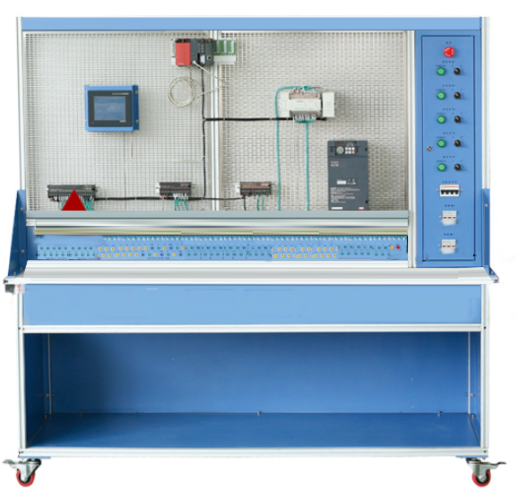 控制系統整體也是由鋁型材搭建而成,正面中間設有不銹鋼網(wǎng)孔板,網(wǎng)孔板上可以根據任務(wù)要求調整上面安裝的自動(dòng)化設備。