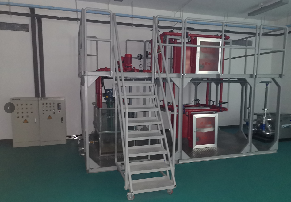 消防及給排水設備安裝與控制實(shí)訓裝置的消防給排水對象模型整體采用噴塑鋼框架進(jìn)行設計,分上下兩層結構、結構可通過(guò)扶梯進(jìn)入2層、主要消防管道設備安裝在噴塑鋼架底座上、具備開(kāi)放式的特點(diǎn),消防給水系統、(消防水系統由濕式報警系統和消防栓管網(wǎng)系統組成)、生活給水系統、排水系統和控制系統四個(gè)部分組成。
