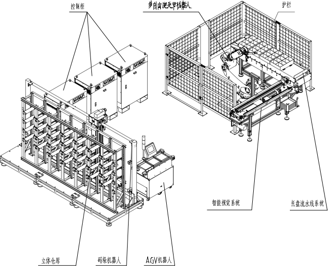 (1) 碼垛機立庫系統,用于存儲物品托盤(pán),并且按照要求碼垛機完成出庫和入庫;