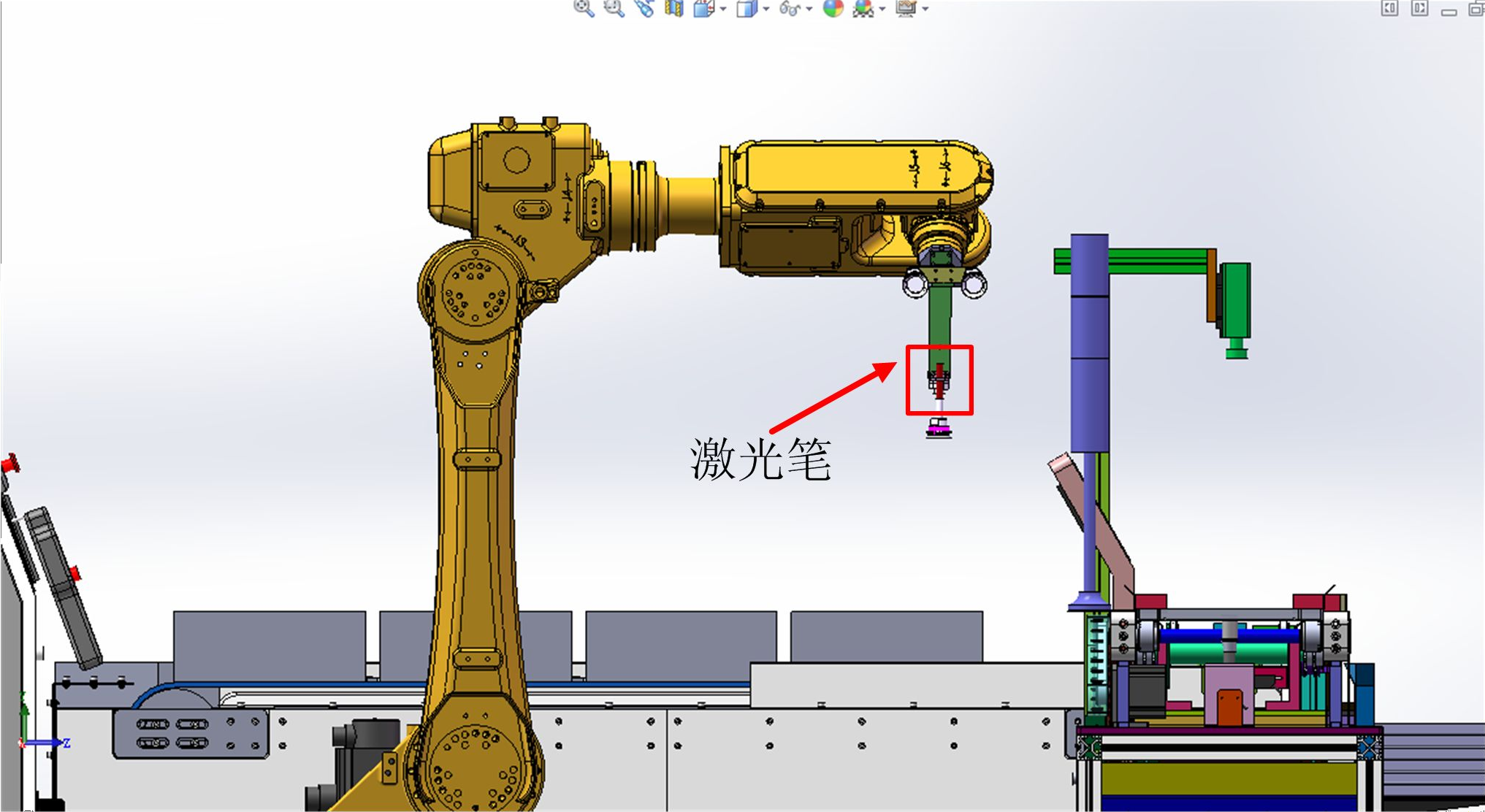 如圖 2-4 所示,在工業(yè)機器人末端夾具上安裝了一個(gè)激光筆,具體調節步驟如下: