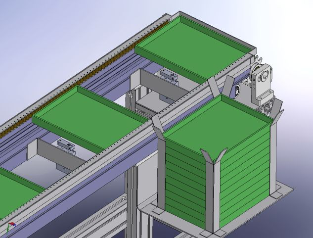 (3) 托盤(pán)流水線(xiàn),負責把貨品托盤(pán)輸送到視覺(jué)檢測工位,經(jīng)視覺(jué)定位識別輸送到抓取工位;