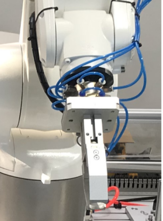 4、工業(yè)機器人末端安裝電磁吸盤(pán),可匹配多種夾具。同時(shí)至少配備4種工裝夾具,夾具有專(zhuān)門(mén)的工具架安放,每個(gè)夾具的負重至少在3kg以上。按照實(shí)訓項目的要求可分別配合工業(yè)機器人完成物料夾取、軌跡模擬、寫(xiě)字繪圖等工作。