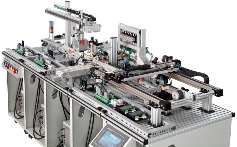 該系統的各站是安裝在帶槽的鋁型板上,各站可容易的連接在一起組成一條自動(dòng)加工生產(chǎn)線(xiàn)。站內由各種模塊化形式構成,各模塊之間易于搭建、拆卸和維護,各工作站之間可隨意組合。