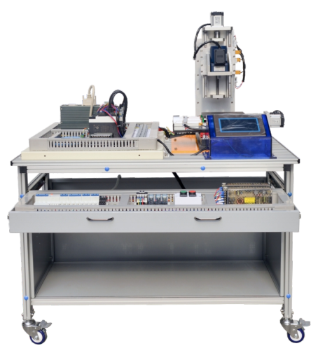 本設備主要由底板、伺服電機及伺服驅動(dòng)器、固高運動(dòng)控制系統、觸摸屏、高精度絲桿傳動(dòng)機構、托板、限位傳感器組件、鋁合金導軌式支架等組成。它是一種將運動(dòng)控制器、交流伺服電機調速、傳感器應用、位置控制、復雜的開(kāi)關(guān)量控制、時(shí)序邏輯控制有機結合成一體的教學(xué)裝置。
