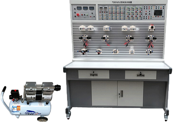 1、氣動(dòng)與PLC實(shí)訓裝置主要由實(shí)訓桌及實(shí)訓臺、氣動(dòng)元件和電氣控制器件、可編程控制器(PLC)等組件組成。