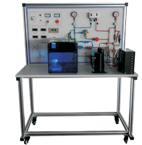 4.面板可觀(guān)察到整個(gè)制冷系統結構原理以及主要部件的實(shí)際物體,相應部件均有名稱(chēng)標識;并設有視液鏡,可觀(guān)察制冷劑狀態(tài)