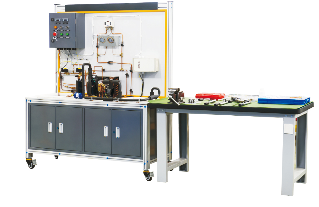 該裝置基于世界技能大賽的基本要求,著(zhù)重提高學(xué)員的職業(yè)素養,提供一個(gè)實(shí)訓平臺,由學(xué)生進(jìn)行制冷系統的基本設計、安裝、調試及維修等實(shí)訓。該裝置能全面的實(shí)訓學(xué)生的綜合能力,其技能包括:系統設計技能,管工技能,焊工技能,電工技能,壓力測試、抽真空、真空測試、制冷劑測試及加注、電氣測試技能、制冷設備調試技能。還包括了制冷系統調試運行的全部步驟,能滿(mǎn)足實(shí)訓教學(xué)、實(shí)際工程訓練及職業(yè)技能競賽的要求。