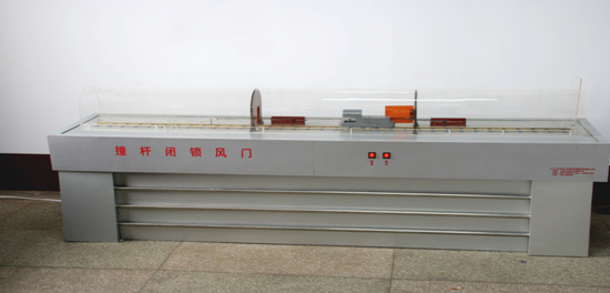 該井下各種風(fēng)門(mén)演示裝置(適合于二、三、四級),采用電傳動(dòng),使電機車(chē)在軌道行走,演示各種閉鎖風(fēng)門(mén)的開(kāi)關(guān)原理。
