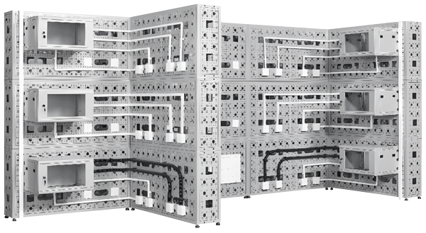 4、多功能墻面模塊化設計,分為不同功能的安裝區域,可以直觀(guān)模擬建筑物不同工作區域,如工作區布線(xiàn)、暗裝光纖入戶(hù)多媒體信息箱布線(xiàn)、機柜布線(xiàn)等。