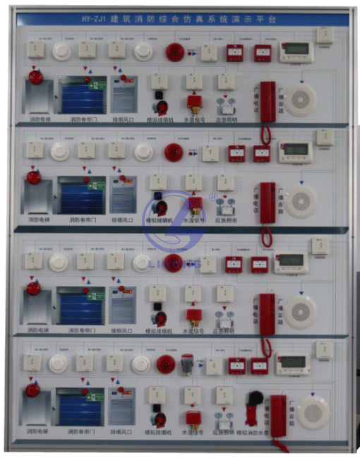 定制展示架由工業(yè)鋁型材制作、感煙探測器、感溫探測器、聲光警報器、火災顯示盤(pán)、模擬消防電梯迫降模塊、應急照明及疏散指示標志、防排煙系統組件、消防應急廣播模塊及揚聲器、消防電源強切、繼電器、按鈕、蜂鳴器等。實(shí)現火災自動(dòng)報警、聯(lián)動(dòng)控制建筑物防排煙系統、消防噴淋泵、消防栓系統泵、電梯迫降、應急照明疏散指示、電切、防煙樓梯間模擬演示功能,立體化實(shí)操教學(xué)設備。配置萬(wàn)向輪、航空插頭插座、工業(yè)插頭插座,可與其他設備快速組合安裝。