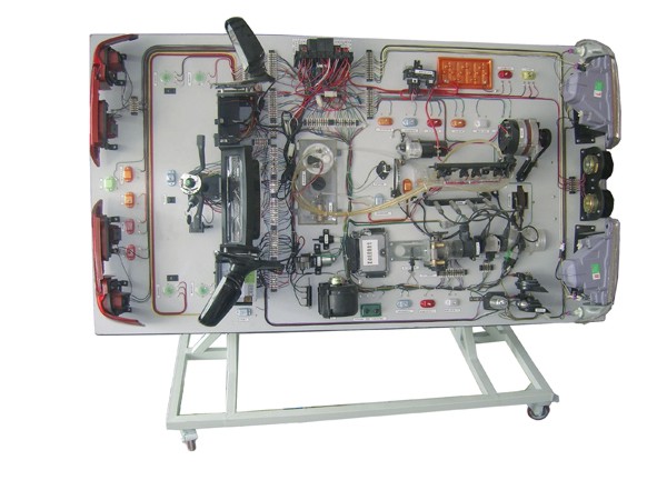 實(shí)驗臺按照桑塔納時(shí)代超人全新全車(chē)電路電器線(xiàn)路安裝而成。配有全車(chē)電線(xiàn)束,儀表盤(pán),各種開(kāi)關(guān)、前后燈光分電路、點(diǎn)火線(xiàn)圈、發(fā)動(dòng)機電腦、傳感器、繼電器、中央線(xiàn)路板、節氣組件等等。均用實(shí)車(chē)實(shí)物裝成。