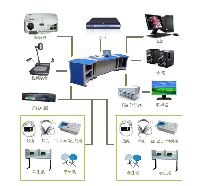 LG-2240型 模擬語(yǔ)音室是一種具有強大功能的多媒體語(yǔ)音教室,全部使用立體聲傳輸, 產(chǎn)品性能穩定,高中低檔系列齊全,因而在可靠性、維護性和可擴展性上有很大的優(yōu)勢。